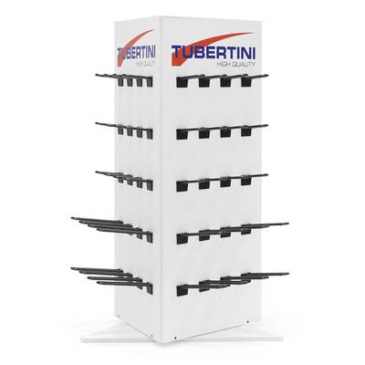 Struttura girevole da banco, per esporre ami o altri prodotti. Fornito di ganci portablister per 60 posti totali.