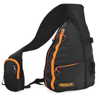 Zaino monospalla ideale per la pesca itinerante con le esche artificiali. Possiede due ampi vani dove alloggiare artificiali e minuterie. Sulla parte anteriore dello spallaccio è ricavata una tasca per il telefono . Un accessorio molto pratico è il cavetto retraibile con moschettone utile per applicare forbici pinze o slamatore.